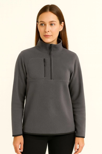 Polar Kazak Dik Yaka Yarım Fermuarlı Fermuarlı Göğüs Cepli Siyah Biyeli Kışlık Rahat Regular Fit Günlük Model Füme