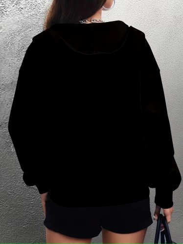 • Kadın uzun kollu kapşonlu fermuarlı önden cep detaylı şardonlu iki iplik ceket