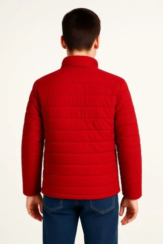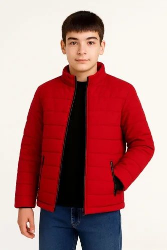 • Erkek Çocuk Şişme Mont Hafif ve Sıcak Tutucu Kışlık Fermuarlı Su İtici Rahat Günlük Mont Kapüşonuz Modern Tasarım Kırmızı