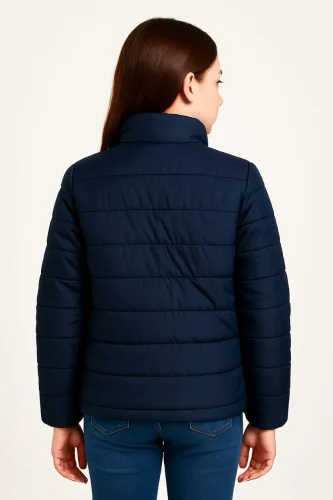 • Kız Çocuk Şişme Mont Hafif ve Sıcak Tutucu Kışlık Fermuarlı Su İtici Rahat Günlük Mont Kapüşonuz Modern Tasarım Lacivert