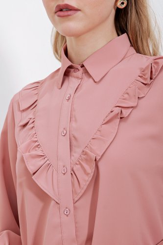 • 20223 Fırfırlı Uzun Kol Gömlek Gül Kurusu