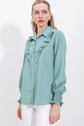 • 20223 Fırfırlı Uzun Kol Gömlek Çağla
