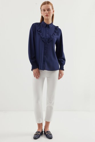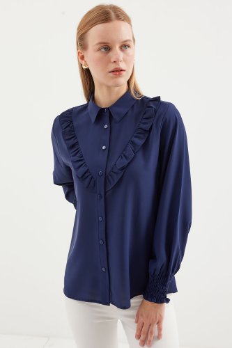 • 20223 Fırfırlı Uzun Kol Gömlek Lacivert